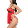 Product details of Set of 2 Women's Lingerie Net Solid Above knee Baby Doll With G String Panty and Robe Free Size Black and Red Color