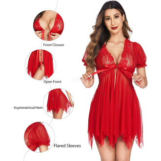 Product details of Sleepwear Womens Chemise Nightgown Full Lace Sling Dress Sexy Babydoll Lingerie With G-String Panty For Honeymoon/First Night/Anniversary Free Size Red and Black Color