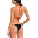 Style : Super hot black women bikini lingerie set. Embellished design with golden pearls for a sexier look. Side-tie panty closure, adjustable for different sizes. Halter neck design